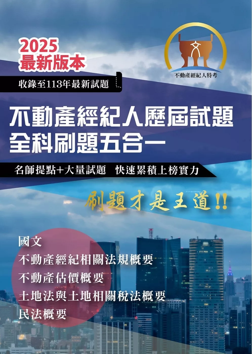 2025年【不動產經紀人歷屆試題全科刷題五合一】(國文+民法概要+不動產估價概要+土地法與土地相關稅法概要+不動產經紀相關法規概要)(短期提升應考實力•勤刷考題才是王道)(初版)