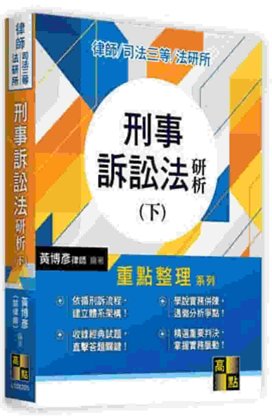建議可搭配作者另著之《刑事訴訟法研析(上)》及《刑事訴訟法實戰解題書》,迅速增強刑訴應試能力。