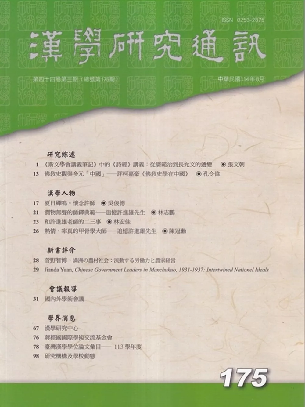 漢學研究通訊44卷3期NO.175(114.08)