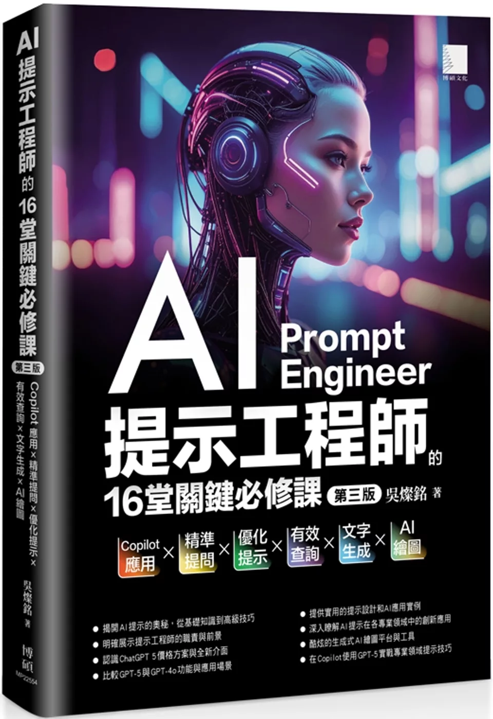 此外,本書也介紹 ChatGPT 全新功能——推理、語音互動、網頁搜尋、畫布協同、專案管理,並解說不同階段的模型特點、註冊與使用方式、免費版與付費版的差異、無痕模式、手機應用,以及 GPTs 機器人的應用方式。更重要的是,本書深入講解如何撰寫高效提示詞,並從教育、內容創作、商業行銷等實務角度,整理出大量提示詞技巧與應用案例,讓你不再只是使用 AI,而是學會高效駕馭 AI。
