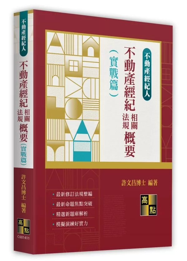 本書特色 一、表解方式編寫,詳盡完整 作者依多年教學經驗,以表解方式編寫本書,將條文歸納整理,提綱挈領,一目了然,以便利讀者掌握內容重點及命題趨勢。 二、資料最新最完整 內容涵括最新法令及最新修法之動向,提供同學最完整的應考資訊。 三、歷屆試題 本書收錄114∼106年之歷屆考題,提供讀者實戰演練,以收鑑往知來之效。 作者另著有《不動產經紀人重點暨測驗題庫》、《不動產經紀人申論題歷屆試題精解》、《不動產經紀人專業科目測驗一本通》,讀者搭配使用,可有效提升應考實力。 ?