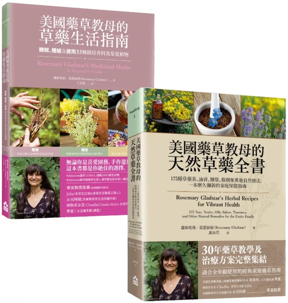 本套書組合:《美國藥草教母的草藥生活指南:瞭解、種植及使用33種廚房香料及常見植物》+《美國藥草教母的天然草藥全書:175種草藥茶、油膏、糖漿、敷劑和其他自然療法,一本歷久彌新的家庭保健指南》共兩冊